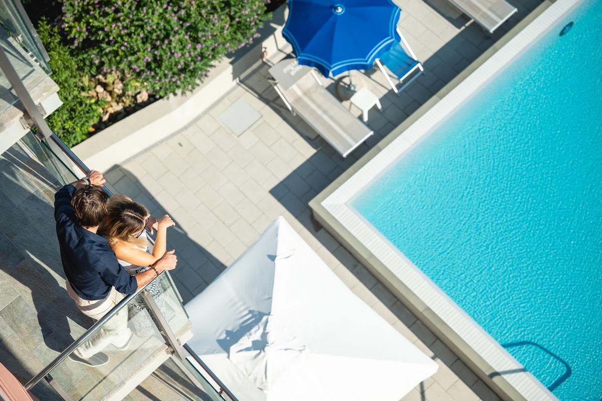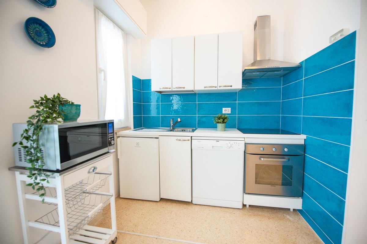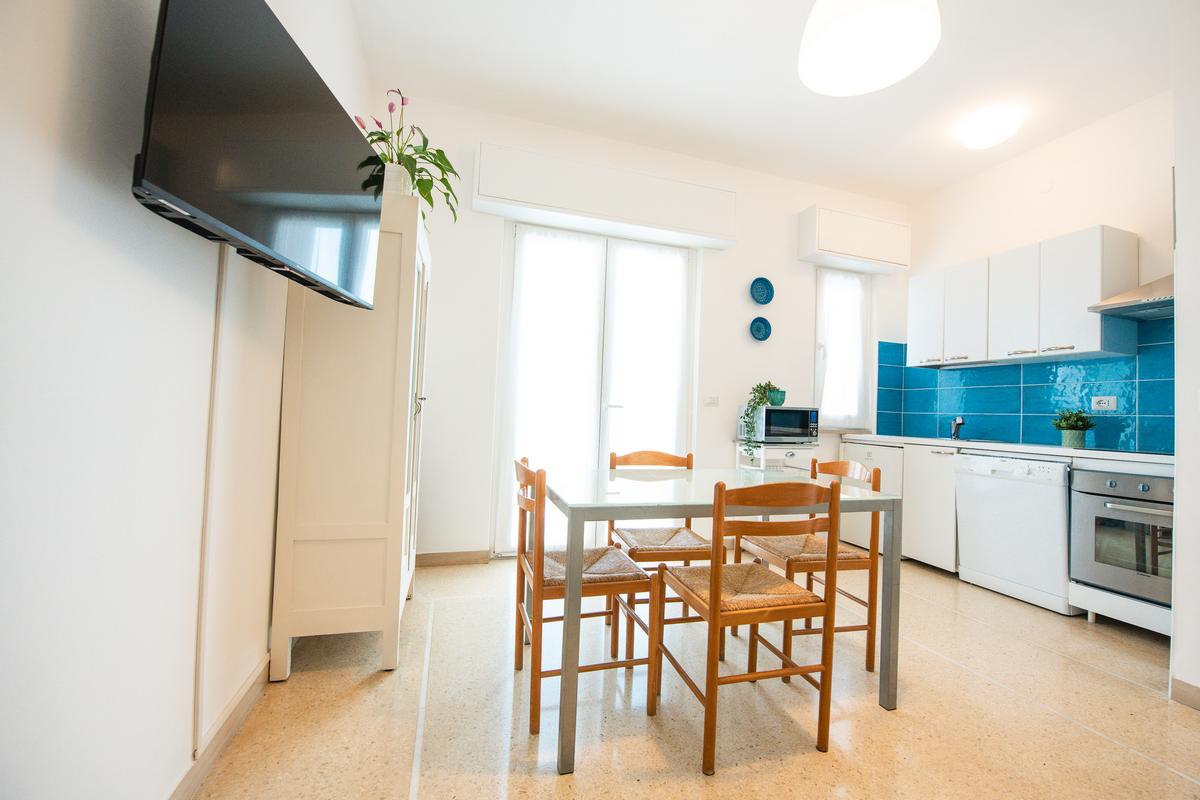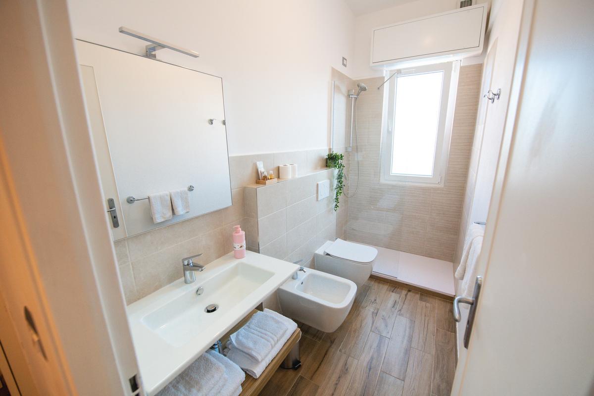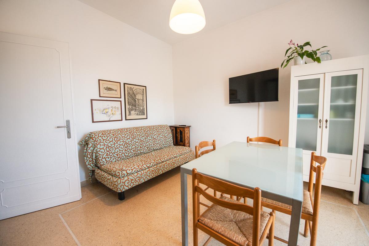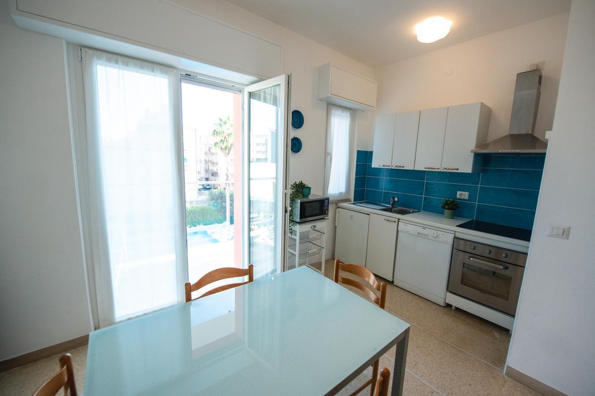 Gli appartamenti sono tutti bilocali costituiti da ingresso, soggiorno con angolo cottura e divano letto matrimoniale o singolo o a due letti, camera con letto matrimoniale e letto singolo o a castello, bagno con doccia. Hanno tutti uno o due ampi balconi sui quali potete trovare un tavolino, due sedie e una sdraio. Gli appartamenti del primo piano hanno il balcone più piccolo rispetto a quelli soprastanti.